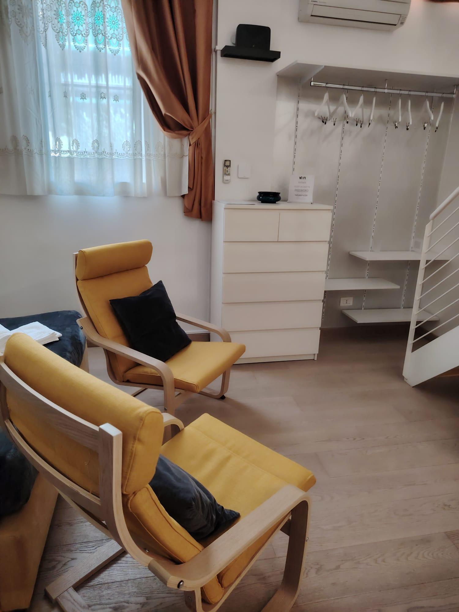 L’appartamento si sviluppa su circa 40 mq e unisce funzionalità e atmosfera rilassante. Gli interni, arredati con gusto moderno e attenzione ai dettagli, creano un clima caloroso, perfetto per il riposo e il recupero. La cucina attrezzata consente di cucinare in libertà, mentre il soggiorno, con poltrone comode e spazi luminosi, invita a prendersi una pausa, leggere o guardare la TV. La zona notte si distingue per i colori caldi e la luce naturale, offrendo un contesto armonioso dove rilassarsi. Il bagno è ampio e ben accessoriato, mentre una pratica zona studio consente di lavorare o studiare in tranquillità.